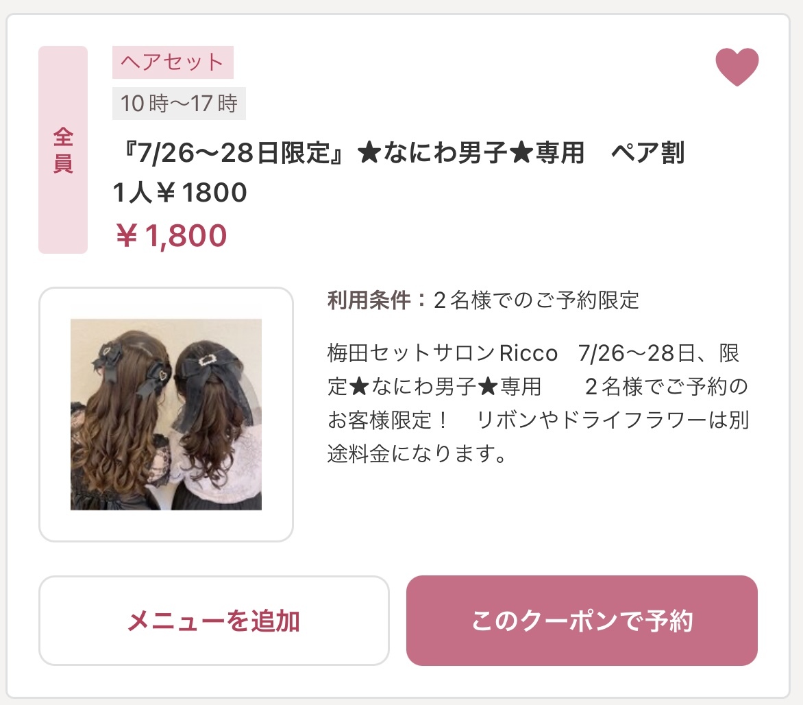 なにわ男子クーポン♪ /大阪ヘアセットサロン